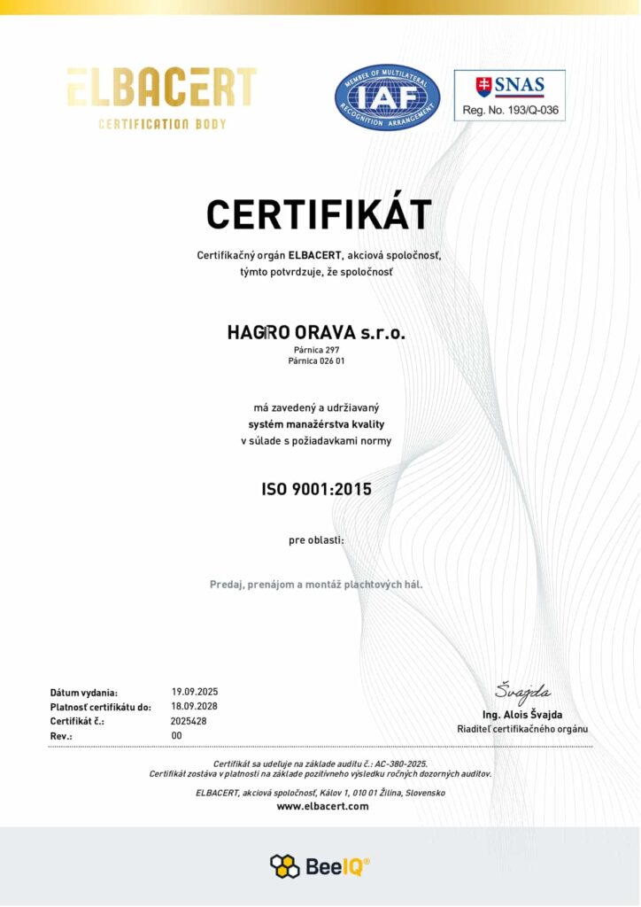 Na trhu sme už od roku 2018 a sme najväčší predajca plachtových hál na Slovensku. Môžeme sa pochváliť s viac ako 2000 realizáciami hál, a to nielen na Slovensku, ale aj v zahraničí, ako napríklad v Maďarsku, Poľsku, Českej republike, Nemecku, Chorvátsku, Rakúsku, Portugalsku. Vďaka tomu, že zabezpečujeme vlastnú dopravu si môžete byť istý, že vám plachtovú halu doručíme čo najskôr, a taktiež sa dokážeme aj veľmi flexibilne prispôsobiť vašim požiadavkám ohľadom termínu dodania.